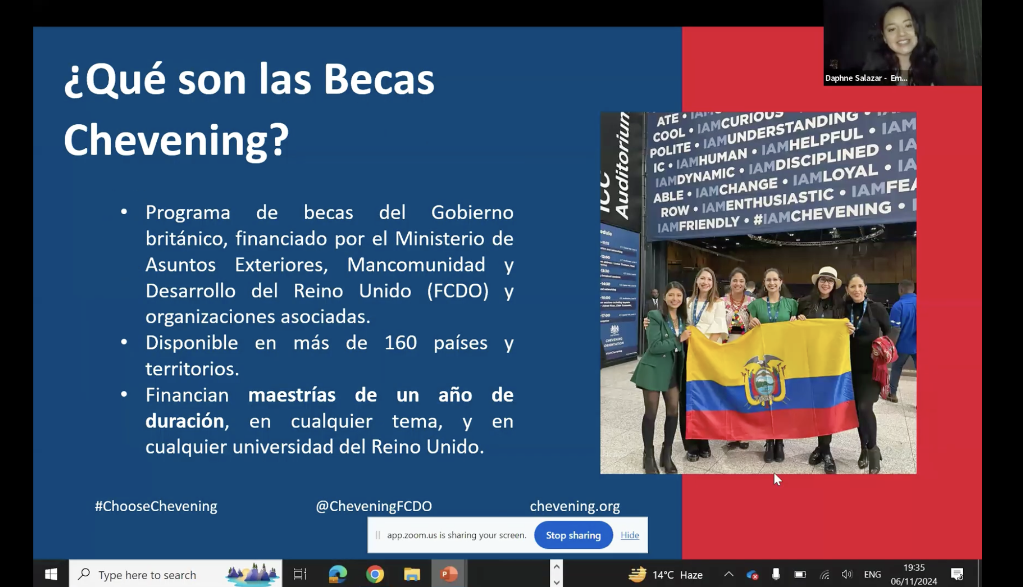 El programa articuló en un mismo espacio oportunidades que rara vez convergen, mediante charlas informativas sobre becas como Chevening (Reino Unido), Fulbright (Estados Unidos), Globo Común (SENESCYT), Opportunity Funds y las becas de Taiwán (Taiwan Scholarship, Huayu Enrichment Scholarship), brindando a los participantes herramientas concretas para planificar su trayectoria académica y acceder a financiamiento internacional.